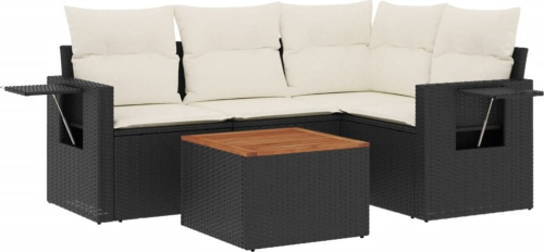 vidaXL 5-częściowy zestaw wypoczynkowy do ogrodu, poduszki, czarny rattan PE