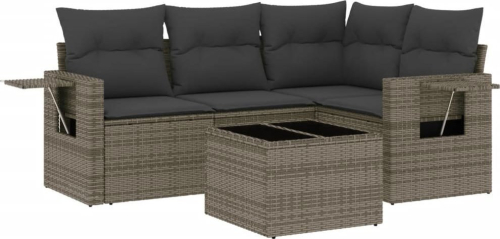 vidaXL 5-częściowy zestaw wypoczynkowy do ogrodu, poduszki, szary rattan PE