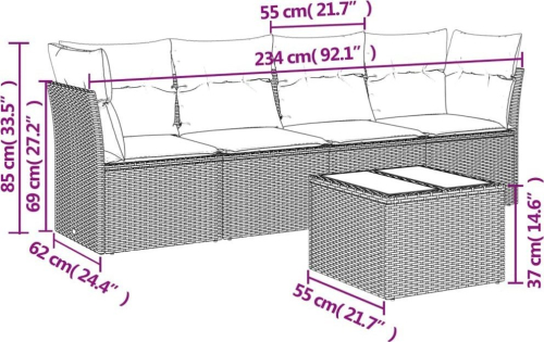 vidaXL 5-częściowy zestaw wypoczynkowy do ogrodu, poduszki, szary rattan PE