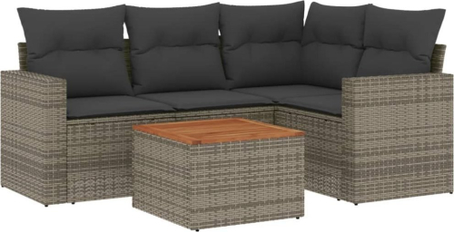 vidaXL 5-częsciowy zestaw wypoczynkowy do ogrodu, poduszki, szary rattan PE