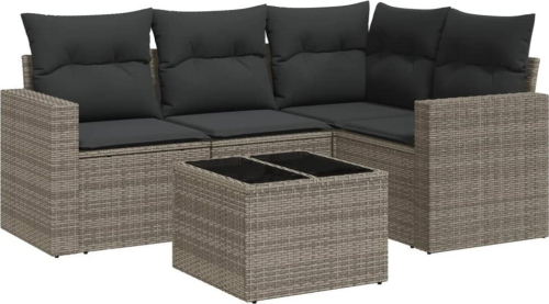 vidaXL 5-częściowy zestaw wypoczynkowy do ogrodu, poduszki, szary rattan PE