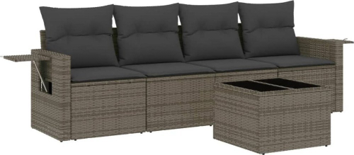 vidaXL 5-częściowy zestaw wypoczynkowy do ogrodu, poduszki, szary rattan PE