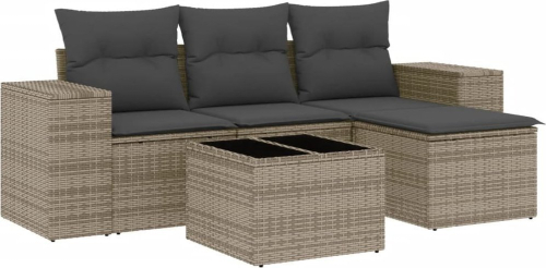vidaXL 5-częściowy zestaw wypoczynkowy do ogrodu, poduszki, szary rattan PE