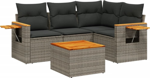 vidaXL 5-częściowy zestaw wypoczynkowy do ogrodu, poduszki, szary rattan PE