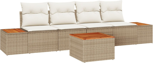 vidaXL 5-elementowy zestaw sof ogrodowych z poduszkami beżowy polirattan akacja