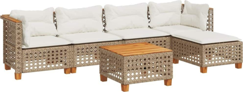 vidaXL 6-cz. zestaw mebli ogrodowych z poduszkami, beżowy, polirattan