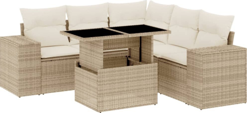 vidaXL 6-cz. zestaw mebli ogrodowych z poduszkami, beżowy, polirattan