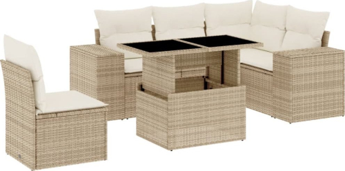 vidaXL 6-cz. zestaw mebli ogrodowych z poduszkami, beżowy, polirattan