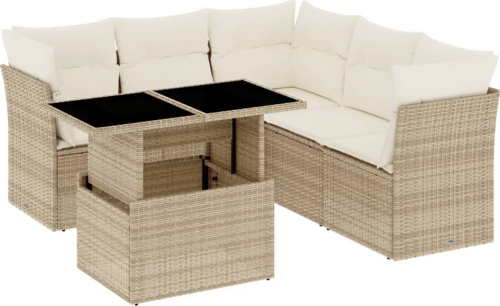 vidaXL 6-cz. zestaw mebli ogrodowych z poduszkami, beżowy, polirattan