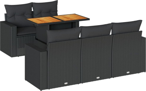 vidaXL 6-cz. zestaw mebli ogrodowych z poduszkami, czarny polirattan