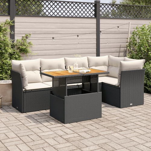 vidaXL 6-cz. zestaw mebli ogrodowych z poduszkami, czarny polirattan