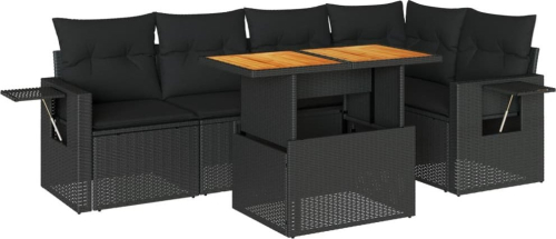 vidaXL 6-cz. zestaw mebli ogrodowych z poduszkami, czarny polirattan
