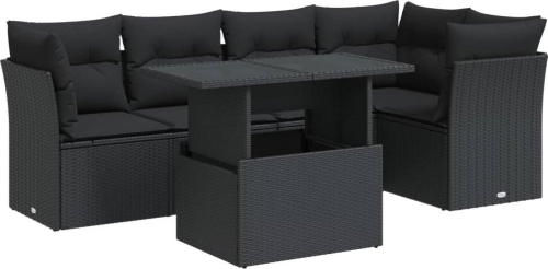 vidaXL 6-cz. zestaw mebli ogrodowych z poduszkami, czarny polirattan