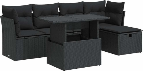 vidaXL 6-cz. zestaw mebli ogrodowych z poduszkami, czarny polirattan