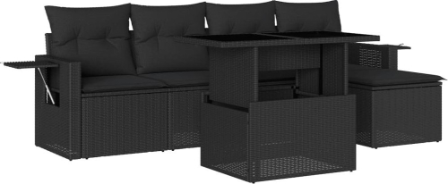 vidaXL 6-cz. zestaw mebli ogrodowych z poduszkami, czarny polirattan