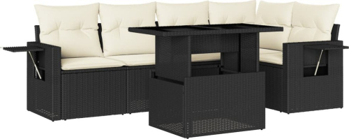 vidaXL 6-cz. zestaw mebli ogrodowych z poduszkami, czarny polirattan