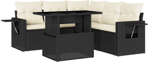 vidaXL 6-cz. zestaw mebli ogrodowych z poduszkami, czarny polirattan