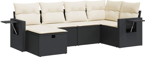 vidaXL 6-cz. zestaw mebli ogrodowych z poduszkami, czarny polirattan