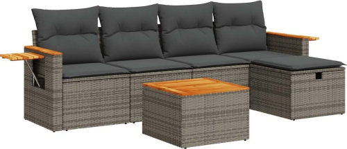 vidaXL 6-cz. zestaw mebli ogrodowych z poduszkami, szary, polirattan