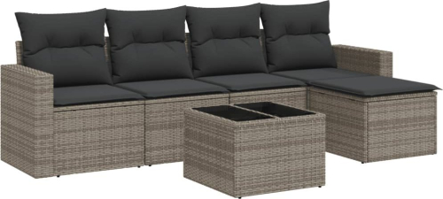 vidaXL 6-cz. zestaw mebli ogrodowych z poduszkami, szary, rattan PE