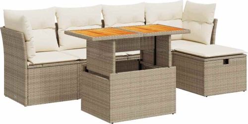 vidaXL 6-cz. zestaw mebli z poduszkami, beżowy, polirattan i akacja