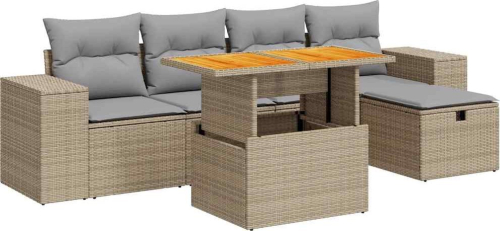 vidaXL 6-cz. zestaw mebli z poduszkami, beżowy, polirattan i akacja