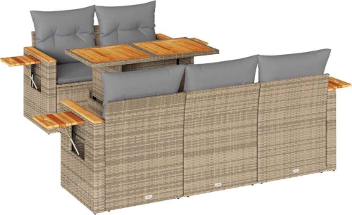 Vidaxl 6-cz. zestaw mebli z poduszkami, beżowy, polirattan i akacja