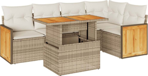 vidaXL 6-cz. zestaw mebli z poduszkami, beżowy, polirattan i akacja