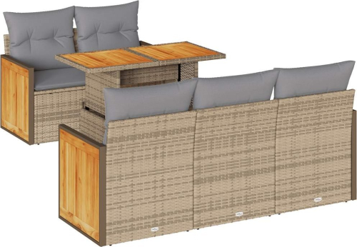 vidaXL 6-cz. zestaw mebli z poduszkami, beżowy, polirattan i akacja
