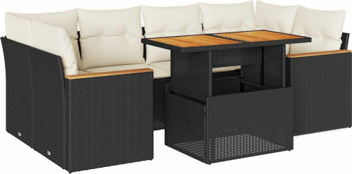 Vidaxl 6-cz. zestaw mebli z poduszkami, czarny, polirattan i akacja