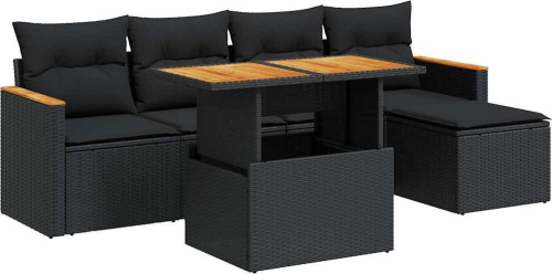 vidaXL 6-cz. zestaw mebli z poduszkami, czarny, polirattan i akacja