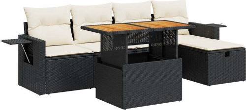 vidaXL 6-cz. zestaw mebli z poduszkami, czarny, polirattan i akacja
