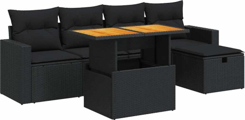 vidaXL 6-cz. zestaw mebli z poduszkami, czarny, polirattan i akacja