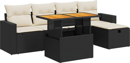 vidaXL 6-cz. zestaw mebli z poduszkami, czarny, polirattan i akacja