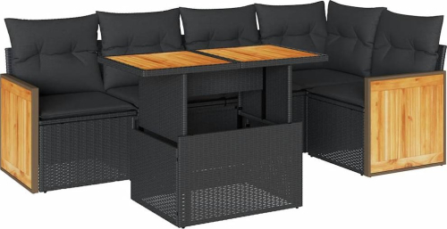 vidaXL 6-cz. zestaw mebli z poduszkami, czarny, polirattan i akacja