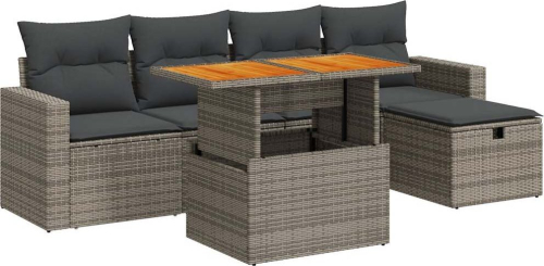 vidaXL 6-cz. zestaw mebli z poduszkami, szary, polirattan i akacja