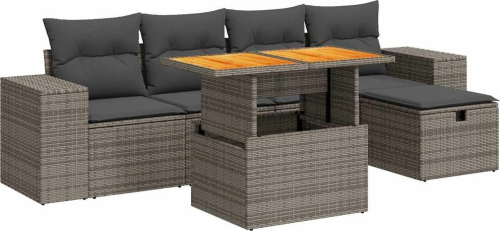 vidaXL 6-cz. zestaw mebli z poduszkami, szary, polirattan i akacja