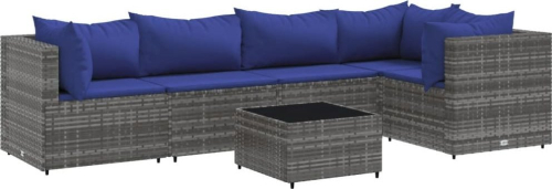 vidaXL 6-cz. zestaw wypoczynkowy do ogrodu, poduszki, szary, rattan PE