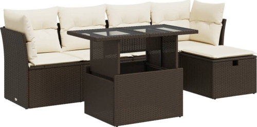 vidaXL 6-cz. zestaw wypoczynkowy do ogrodu, z poduszkami, brązowy