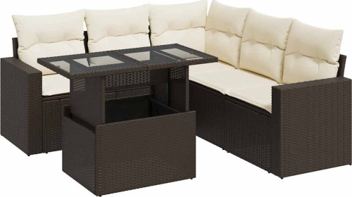 vidaXL 6-cz. zestaw wypoczynkowy do ogrodu, z poduszkami, brązowy