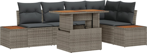 vidaXL 6-częściowy zestaw kanapowy do ogrodu z poduszkami Szary Polirattan