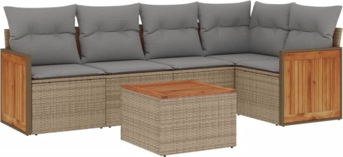 vidaXL 6-częsciowy zestaw mebli ogrodowych z poduszkami, beżowy, polirattan