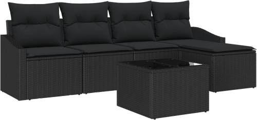 vidaXL 6-częściowy zestaw sof ogrodowych Czarny Rattan, Poliester, Stal