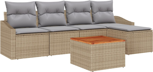 vidaXL 6-częściowy zestaw sof ogrodowych z poduszkami Beżowy Polirattan Akacja