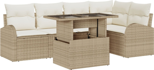 vidaXL 6-częściowy zestaw sof ogrodowych z poduszkami Beżowy Polirattan