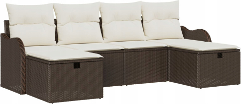 vidaXL 6-częściowy zestaw sof ogrodowych z poduszkami brązowy polirattan