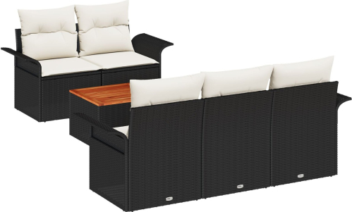 vidaXL 6-Częściowy Zestaw Sof Ogrodowych z Poduszkami Czarny Poli Rattan Akacja