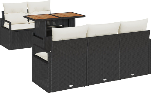 Vidaxl 6-częściowy zestaw sof ogrodowych z poduszkami Czarny Polirattan Akacja