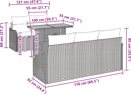 vidaXL 6-częściowy zestaw sof ogrodowych z poduszkami czarny polirattan akacja