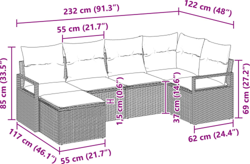vidaXL 6-częściowy zestaw sof ogrodowych z poduszkami Czarny Polirattan